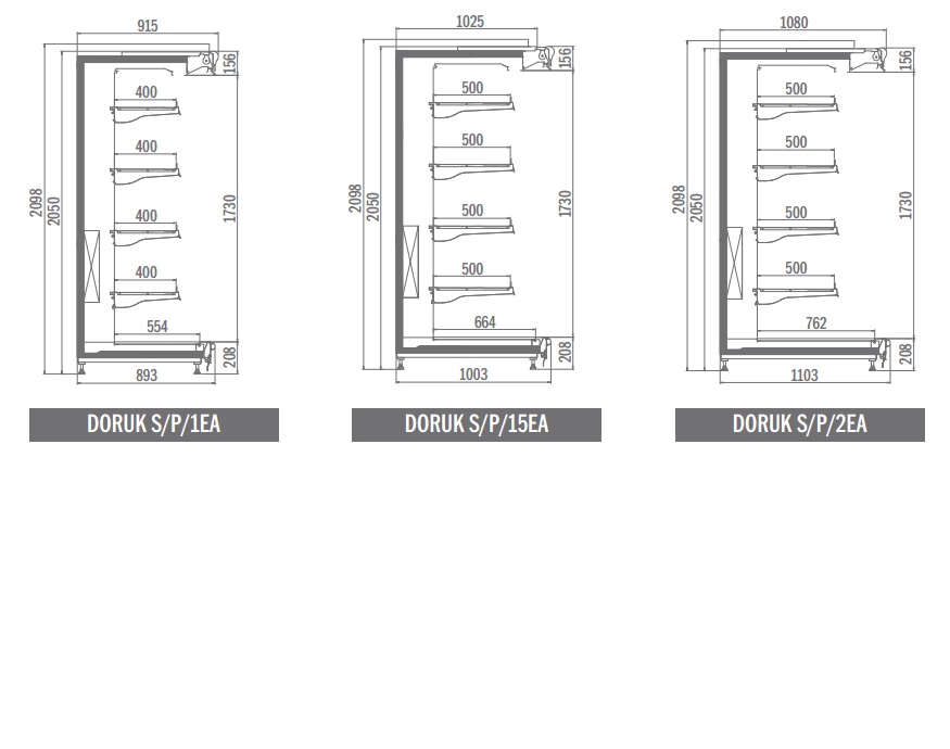 • Inclinable shelves with 400mm, 420mm, 450mm, 500mm, 600 mm length options